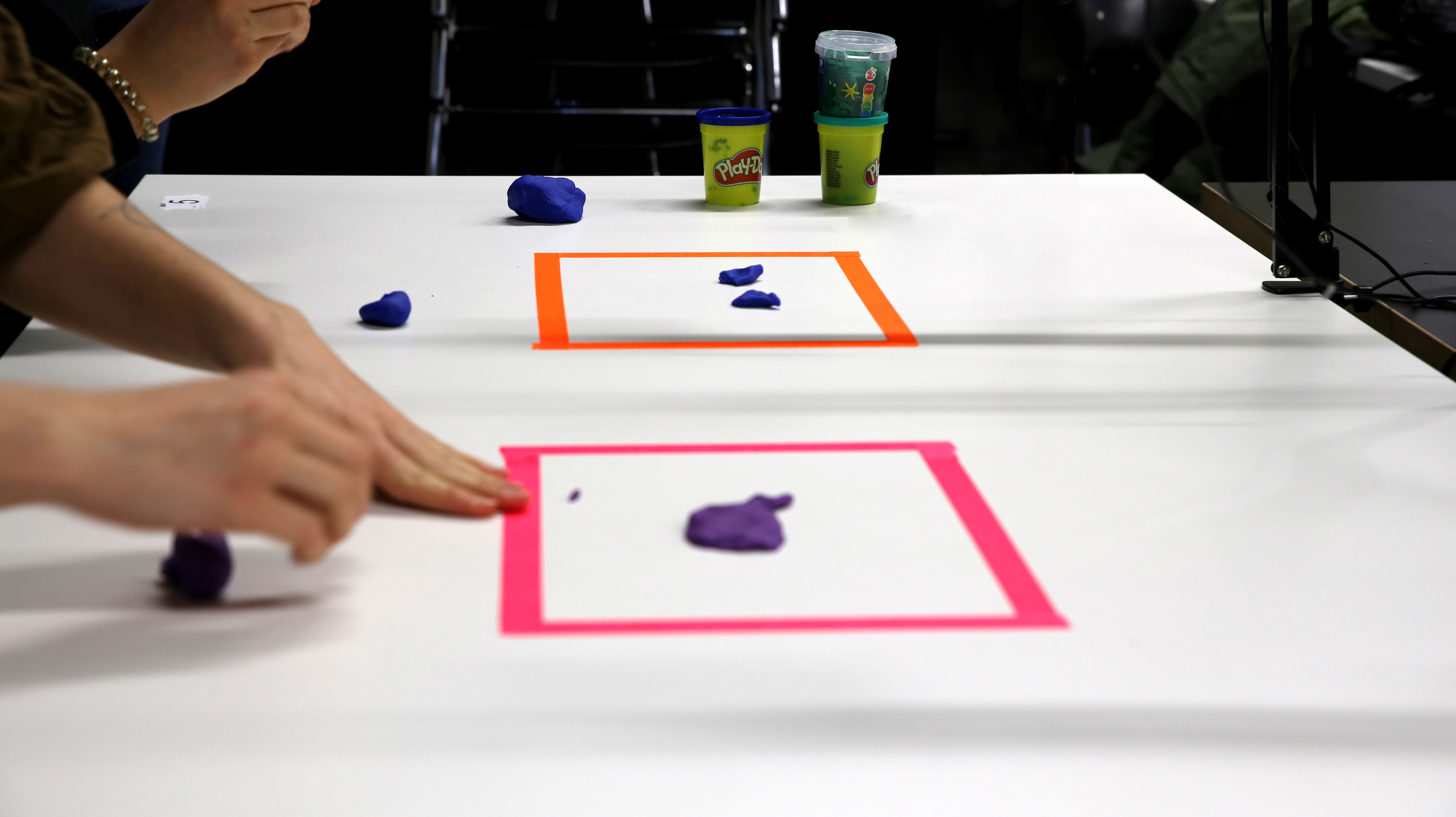 »Let's Knead« is an interactive application in which clay is used for interaction between humans and computers. The computer suggests various shapes to be kneaded by the user. The kneaded figures are recognized and evaluated via a webcam and a neural network. The neural network is based on the datasets from Google Quickdraw and acts as a neutral referee. The game can be played solo or against another player. The goal of this research project is to explore how clay, as a tactile input medium, influences the gaming experience and whether the fun of the game can be increased by adding a competitive element.